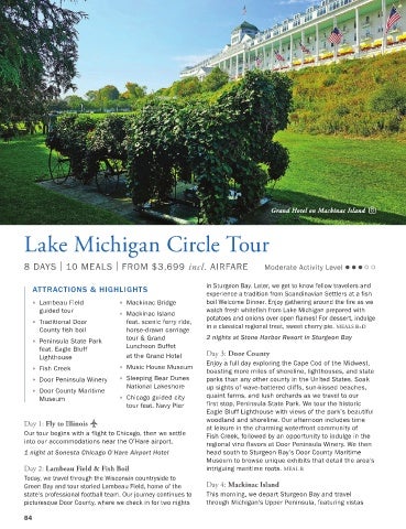 state’s professional football team. Our journey continues to This morning, we depart Sturgeon Bay and travel