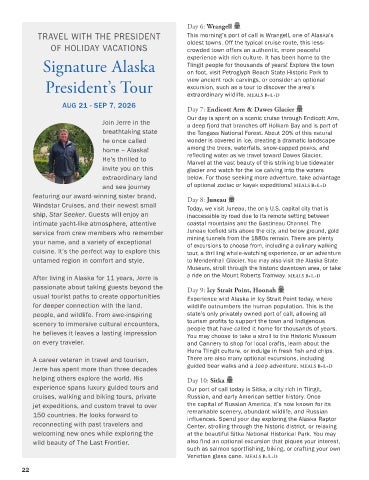 TRAVEL WITH THE PRESIDENT                        This morning’s port of call is Wrangell, one of Alaska’s
