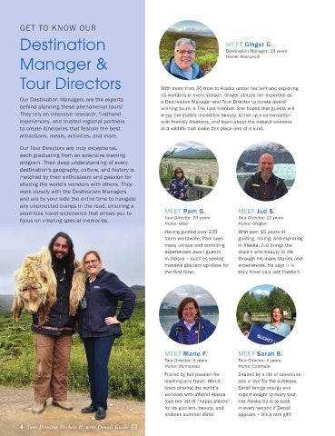 Tour Directors With more than 30 trips to Alaska under her belt and exploring